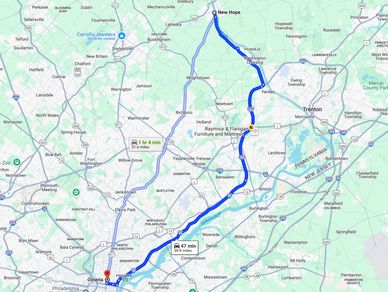 From New Hope: Take PA-32 S/River Rd, turn right on Taylorsville Rd. Take the I-295 W ramp towards Philadelphia. Follow 295 and 95 S into Philadelphia. Take Exit 22, and turn right to Callowhill St. Follow Callowhill to Broad Street and take a right on Broad. Osteria will be on your left.